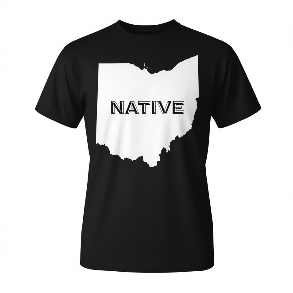 Ohio Native T-Shirt State Outline T-shirt en coton noir unisexe à col rond et manches courtes