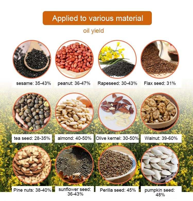 huile de graine d'asphalte, Huile de soja, Rap d'huile de graine, Huile de graines de thé, Huile de basilic, Huile de sésame, D'huile de noix de pin, Huile de graines de tournesol, Almond oil, Huile de noix, Huile d'arachide, Huile de noix de coco, Huile d'olive, Huile de palmeType d'huile