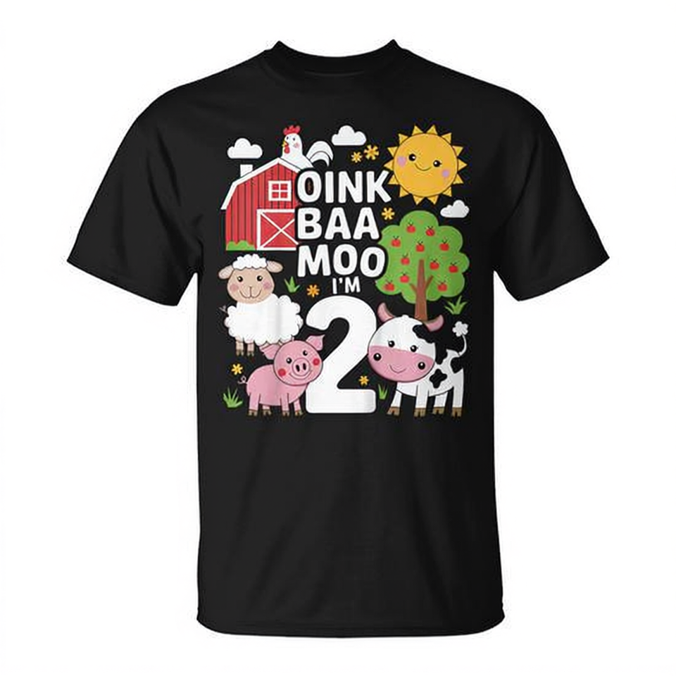 Oink Baa Moo I'm Two Birthday T-shirt mignon sur le thème de la ferme pour le 2e anniversaire