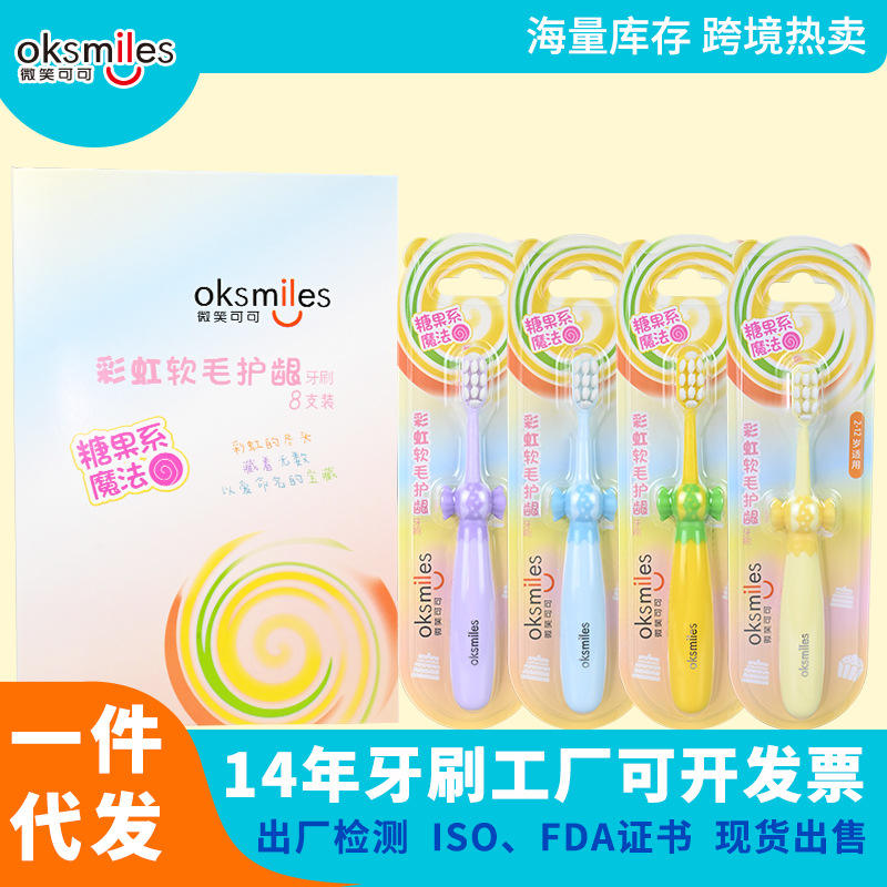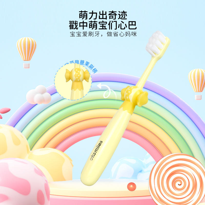 OkSmiles Brosse à dents manuelle à poils doux pour enfants de 2 à 12 ans avec design à poils moelleux
