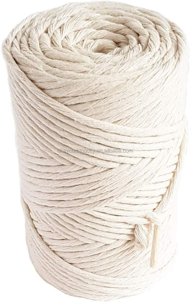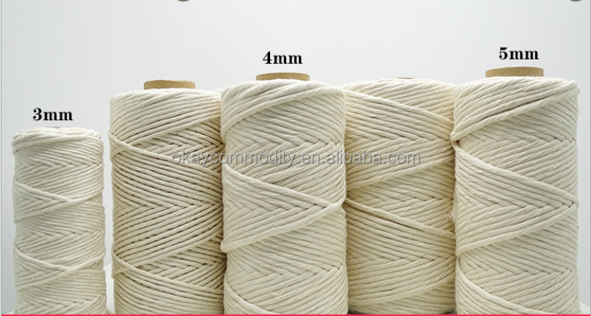 Okay Wholesale Cordon en macramé à cordes naturelles 3mm 4mm 5mm Corde en coton à torsion unique Longueur personnalisée Corde torsadée