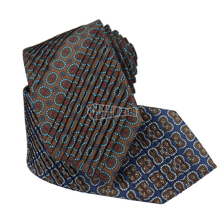 Cravate à imprimé géométrique à l'ancienne bleu marron cravates plissées en soie italienne faites à la main pour hommes