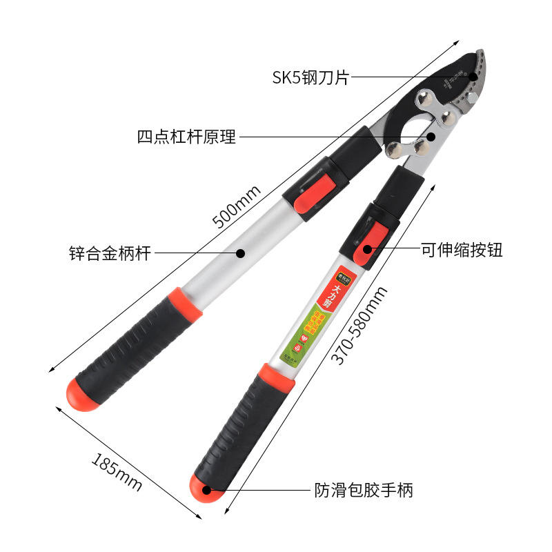 Cisailles de taille télescopiques Old Friend, lame en acier allié 500 mm, diamètre de coupe 20-30 mm, structure papillon
