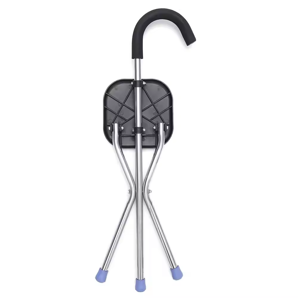Vieil homme béquille tabouret chaise trois jambes pli multifonction siège triangulaire pied bâton de marche canne tabouret