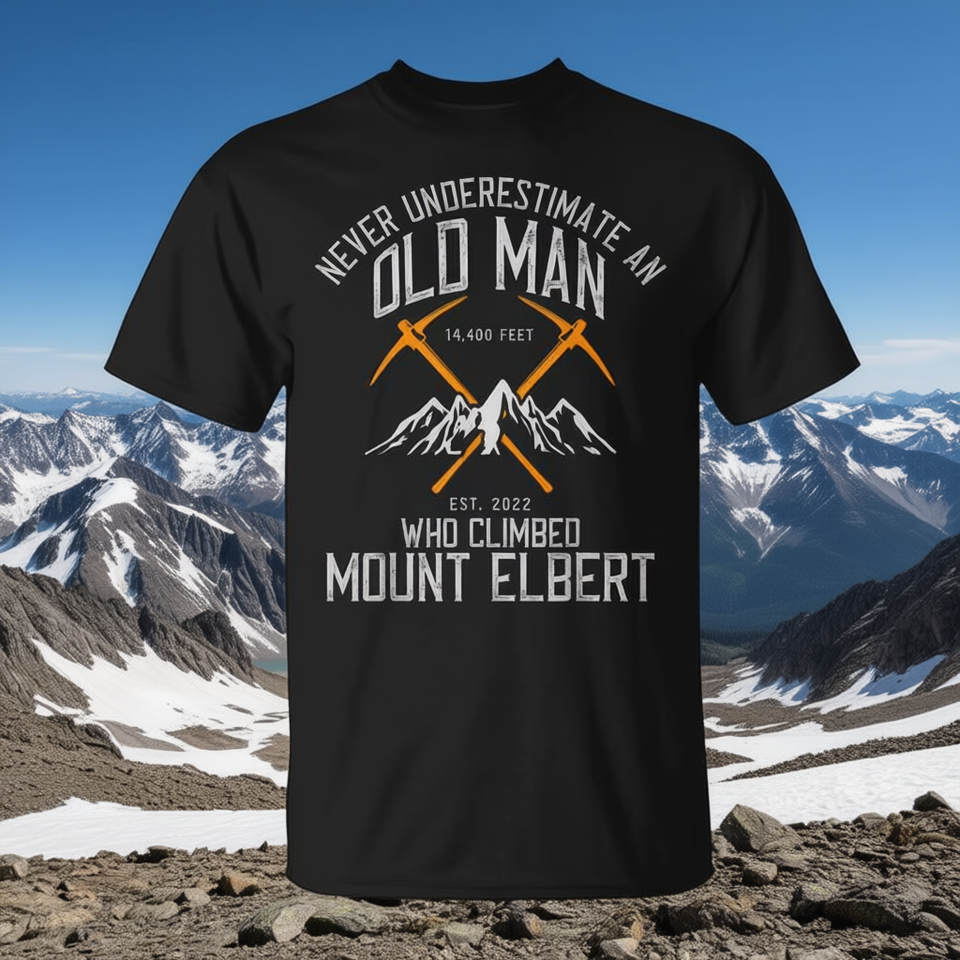 T-shirt Old Man Who Climbed Mount Elbert, 14400 pieds de haut, design d'alpinisme, est. 2022