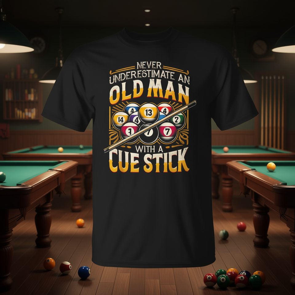 T-shirt Old Man With Cue Stick, cadeau pour hommes, billard, snooker