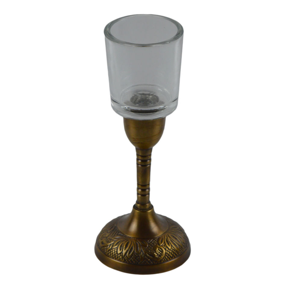 Porte-bougie au design ancien avec détails en laiton, idéal pour la décoration de table à manger, la décoration de villa et la décoration de fête