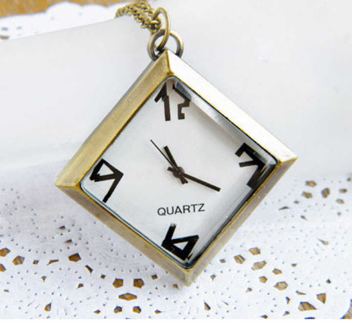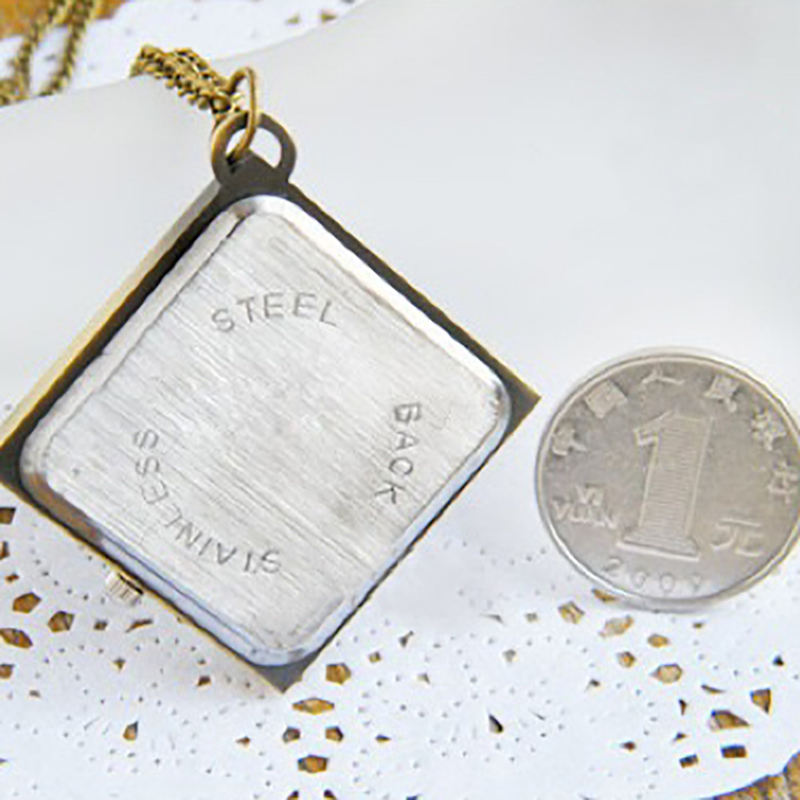 Vieux losange Carré Bronze Rétro Design Laiton Montre De Poche Pendentif Cadran Ouvert Collier Cadeau Pour Hommes Femmes Montre De Poche