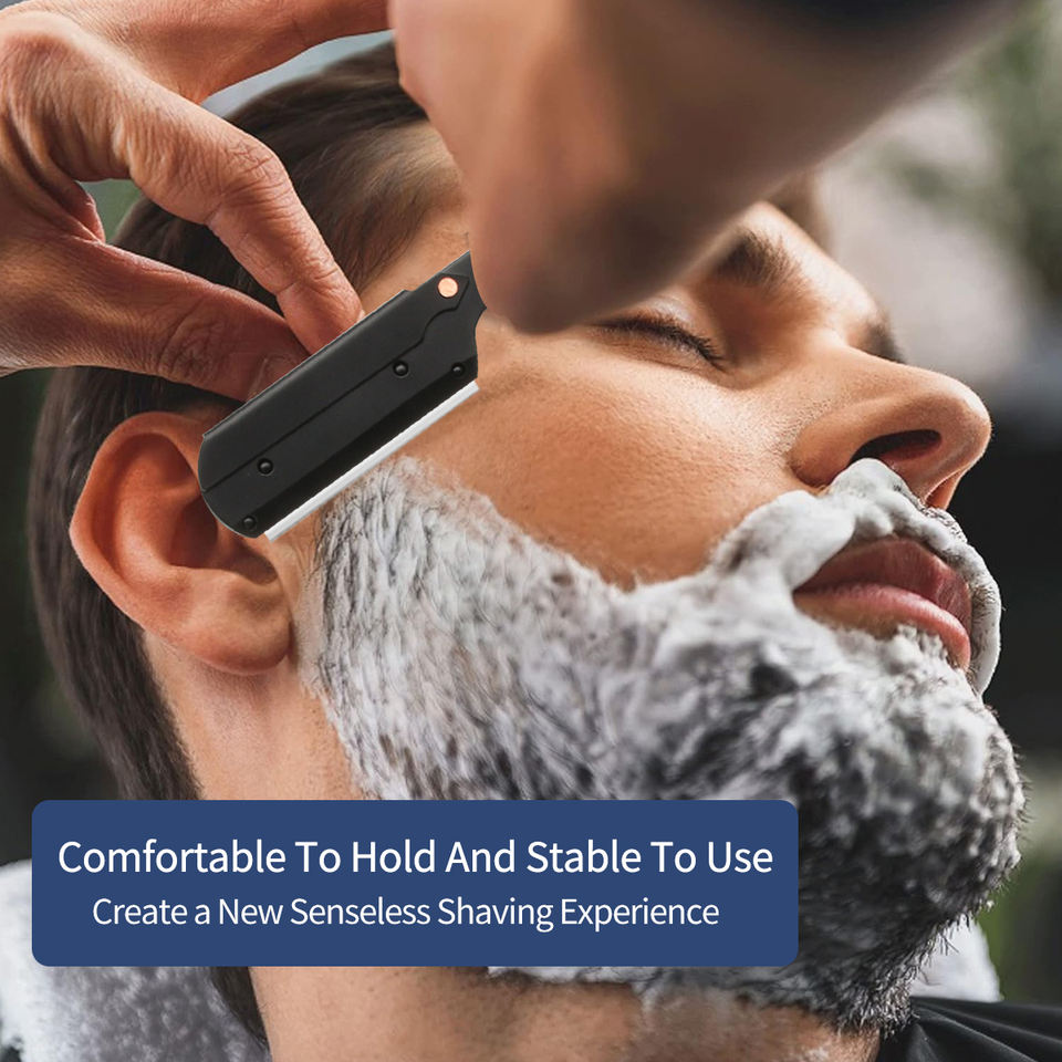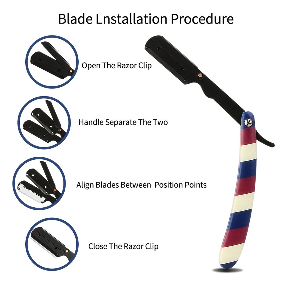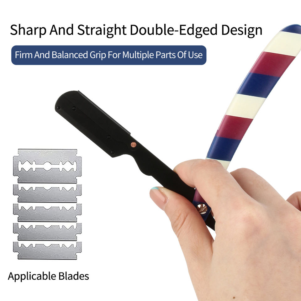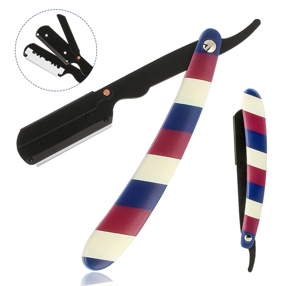 Rasoir manuel de style ancien en acier inoxydable tondeuse à cheveux rayé pliant porte-couteau de coiffure rasoir de rasage pour hommes