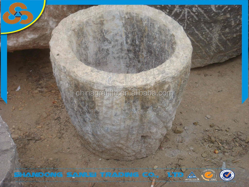 Ancien pot à fleurs en pierre naturelle, en pierre usée