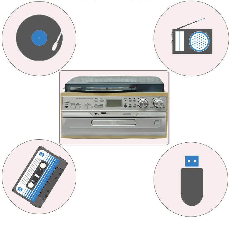 Fonction:LP, CD, cassette, radio AM/FM, lecture et encodage USB/SD