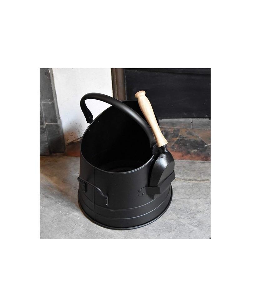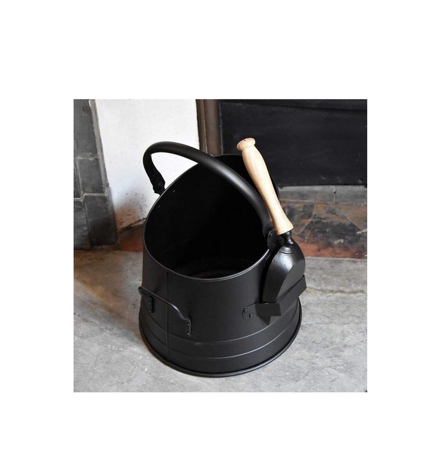 Seau à charbon en fer à l'ancienne pour le stockage des cendres de cheminée avec finition antique et poignée confortable