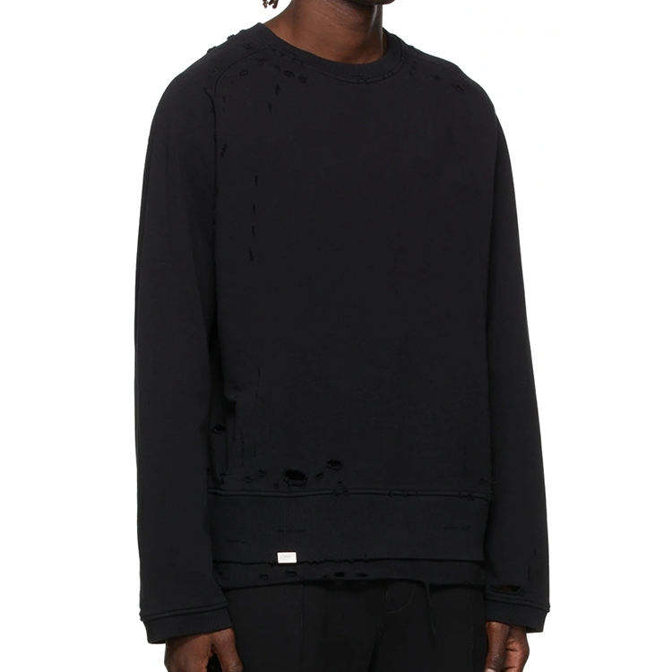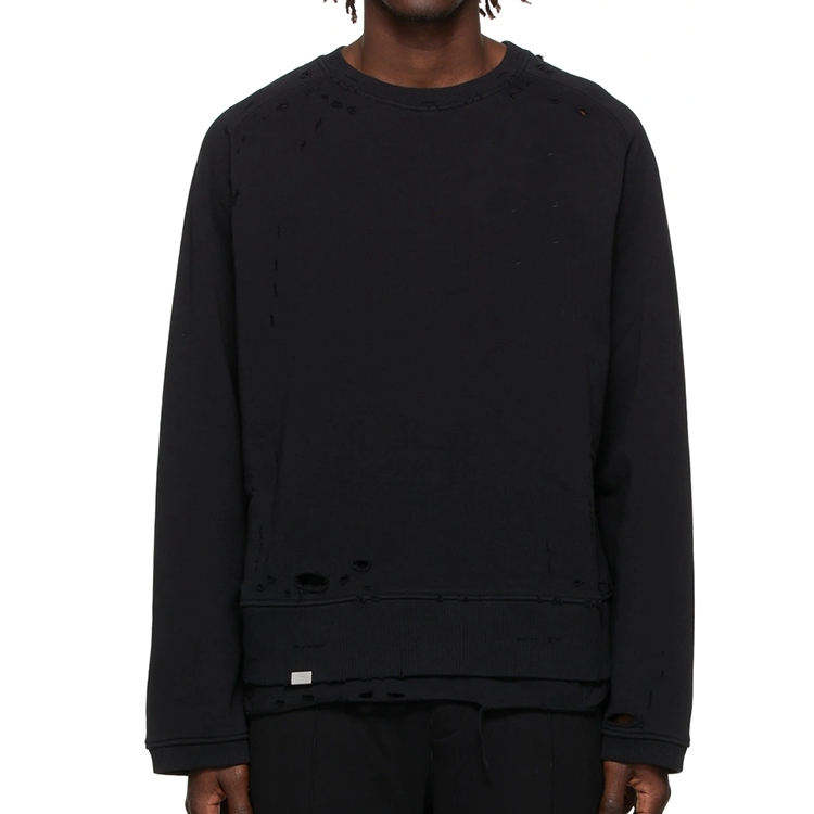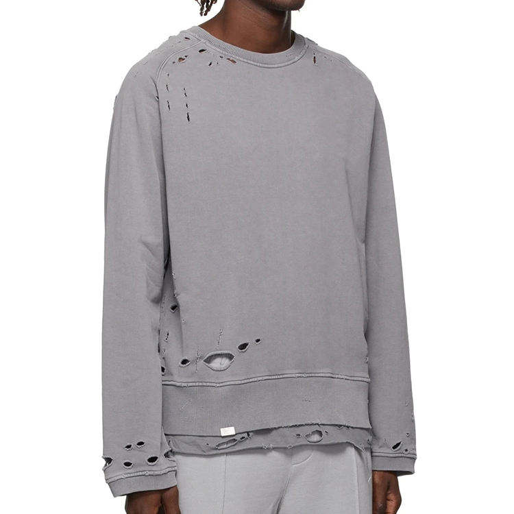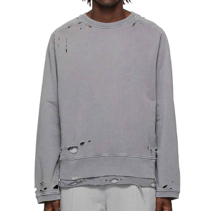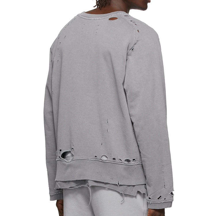Vieux hommes lavés sweats en détresse déchiré ourlet en couches personnalisé col ras du cou déchiré trou sweats à capuche et sweat-shirts