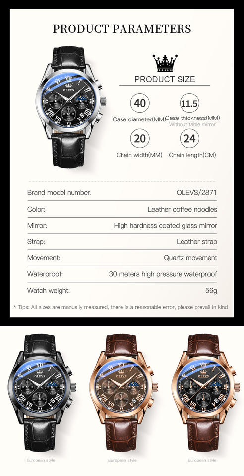 Model name:OLEVS quartz watch 2871