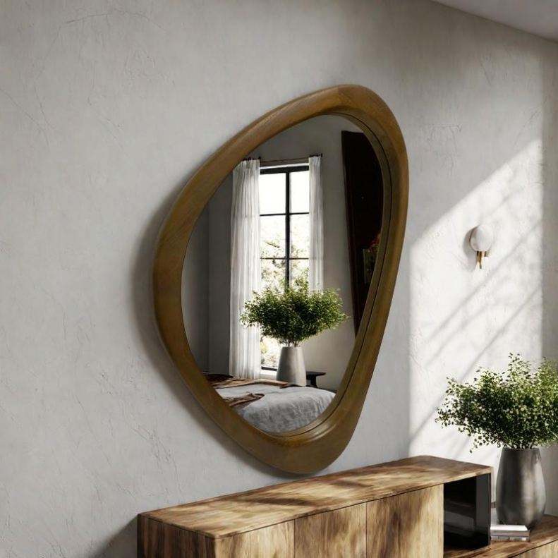 Miroir mural en bois massif de style farmhouse, fait à la main, décoratif, incassable, long, luxueux, asymétrique