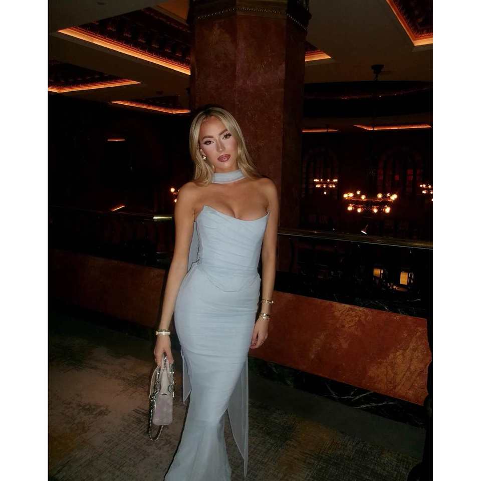 Oligai Elegant Women's XS Blue Cropped Top Set Strapless Bodycon Holiday Party Dress Sexy Maxi Wedding Guest Dress