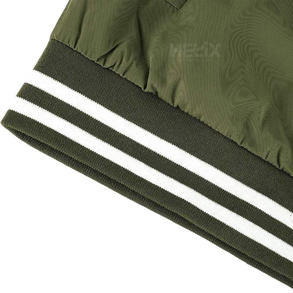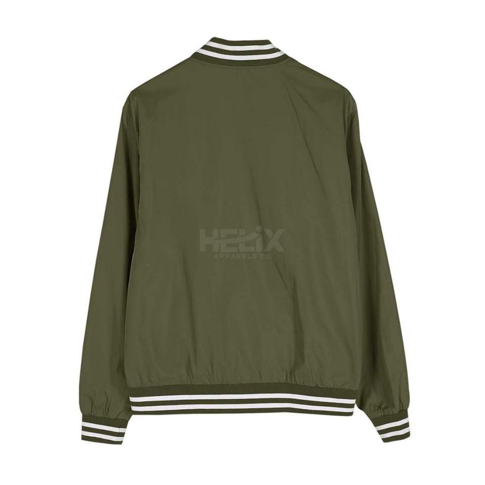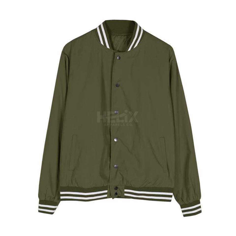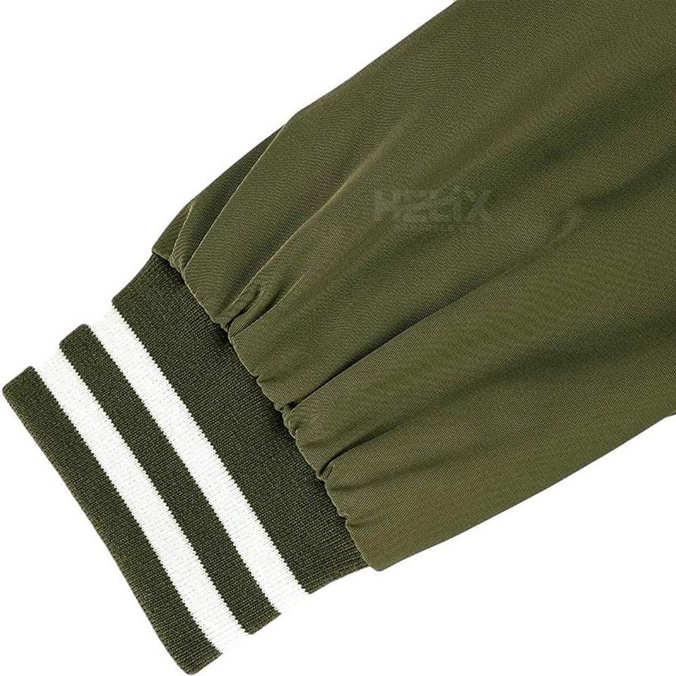 Vestes universitaires classiques en côtelé léger vert olive, design personnalisé sur le devant, coupe-vent, respirant, en cuir véritable