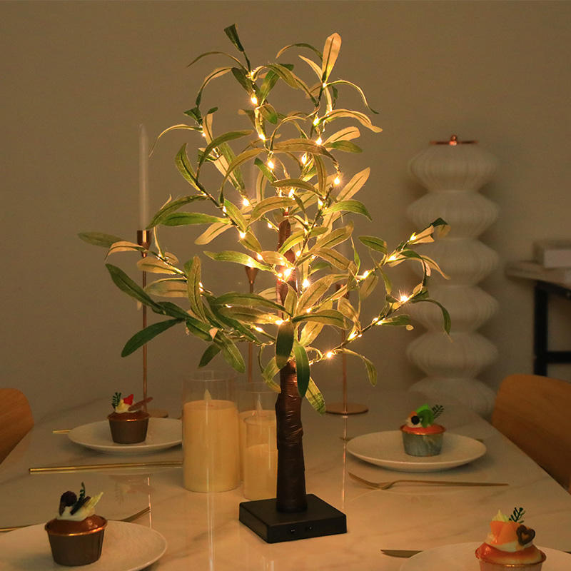 Olive Tree Light Battery Operated/USB 55cm 24led Table Top Artificial Greenery Tree Fairy Lights for Wedding Home Christmas Deco