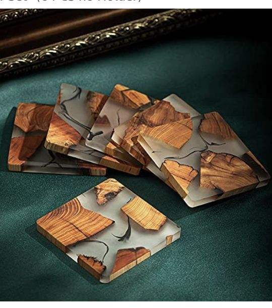 Elegant Stylish Classic Olive Wood Square Coasters Clear Resin Cedar Wood Holder Wedding Gift Drink Coasters Enhance Your