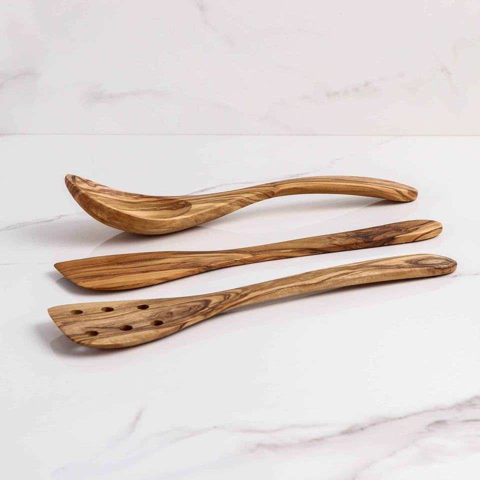 Ensemble d'ustensiles en bois d'olivier de qualité supérieure fait à la main