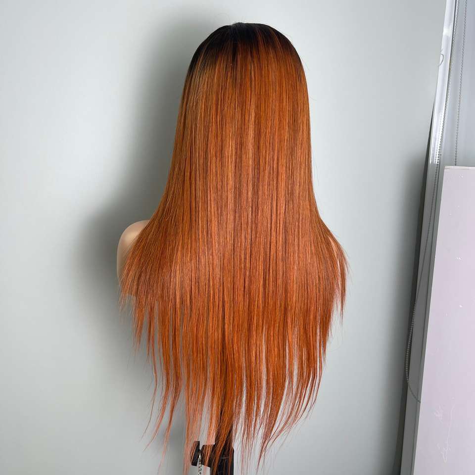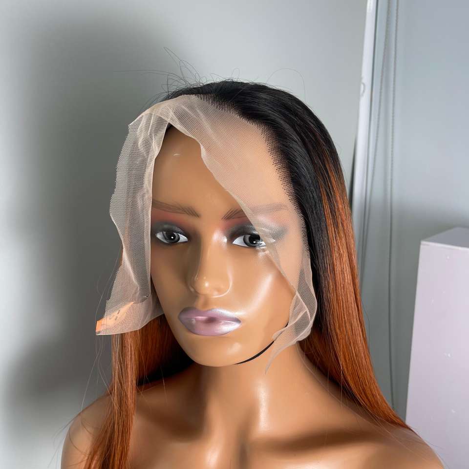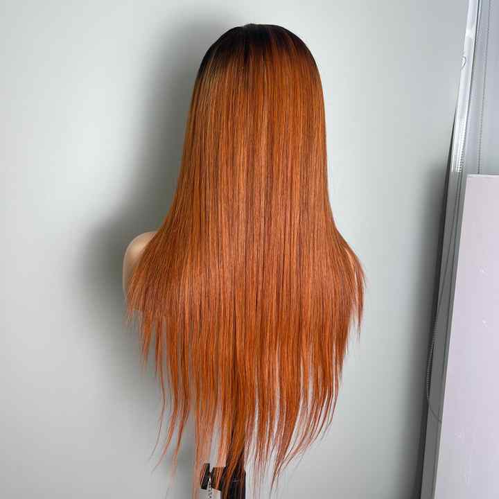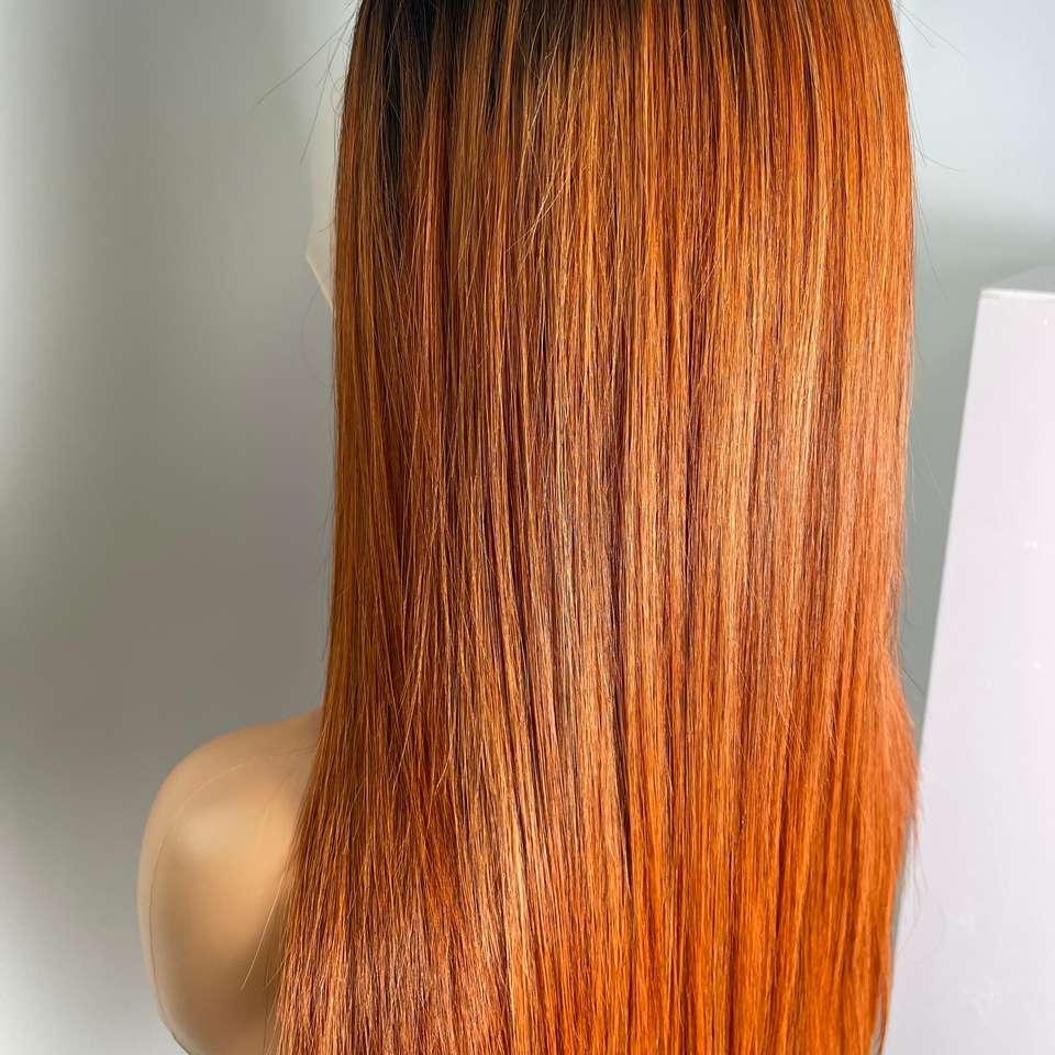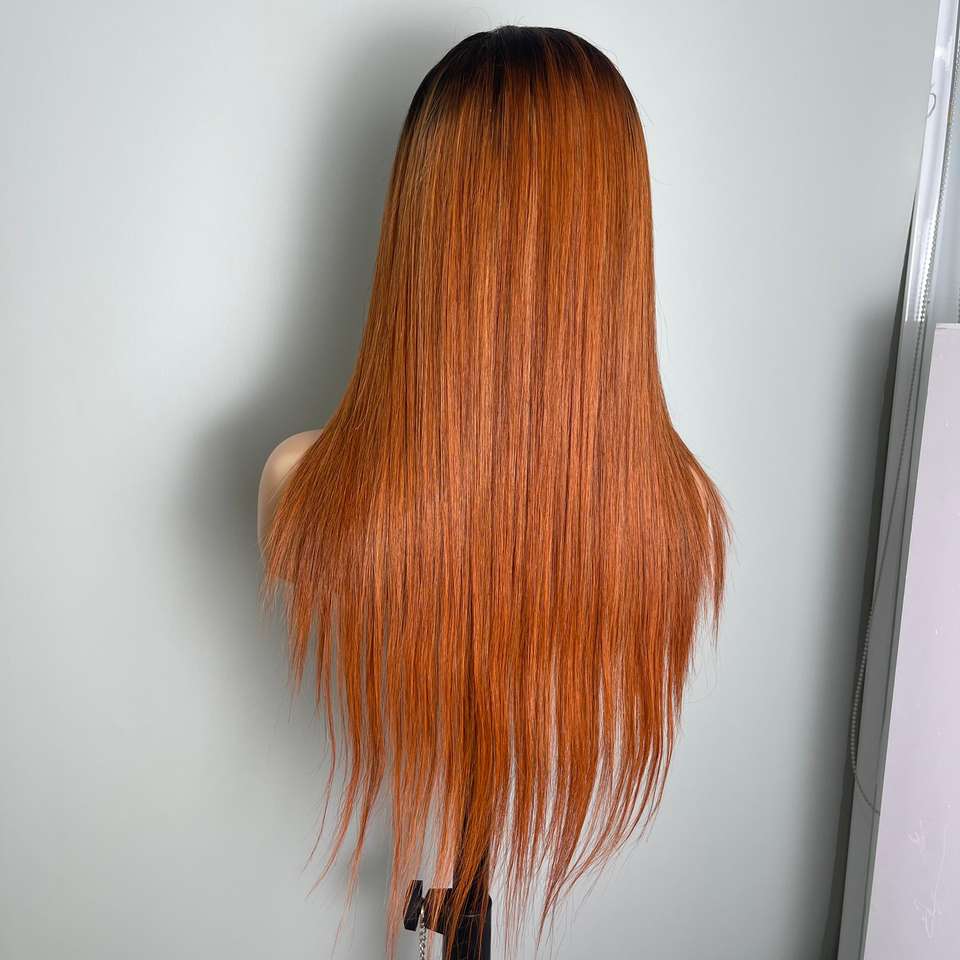 13x4 26 Pouces pour Ombre Noir Orange Couleur Vrais Cheveux Humains 180% Densité Simple Dessiné Armure Super Qualité Fermeture