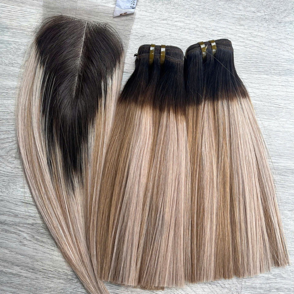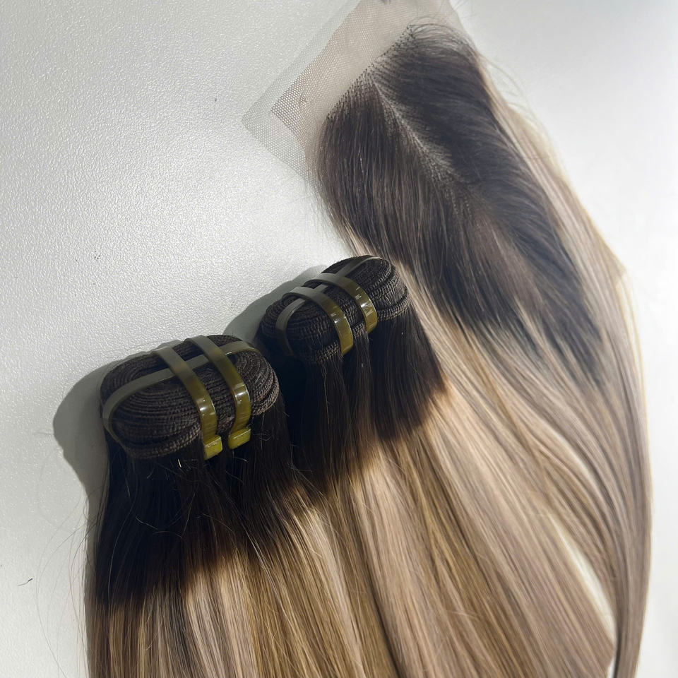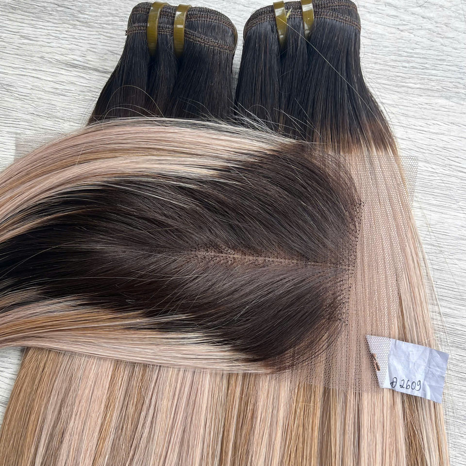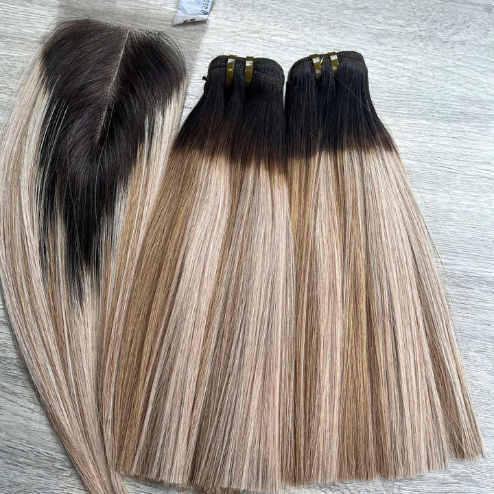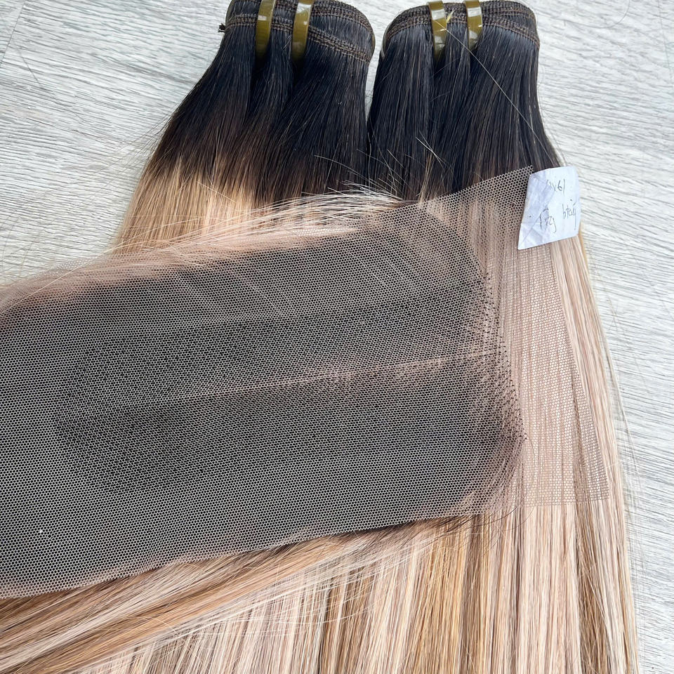 Ensemble de couleur café ombré en gros 100% cheveux humains vierges vietnamiens bruts perruque courte os droite Super Double extension de cheveux étirés