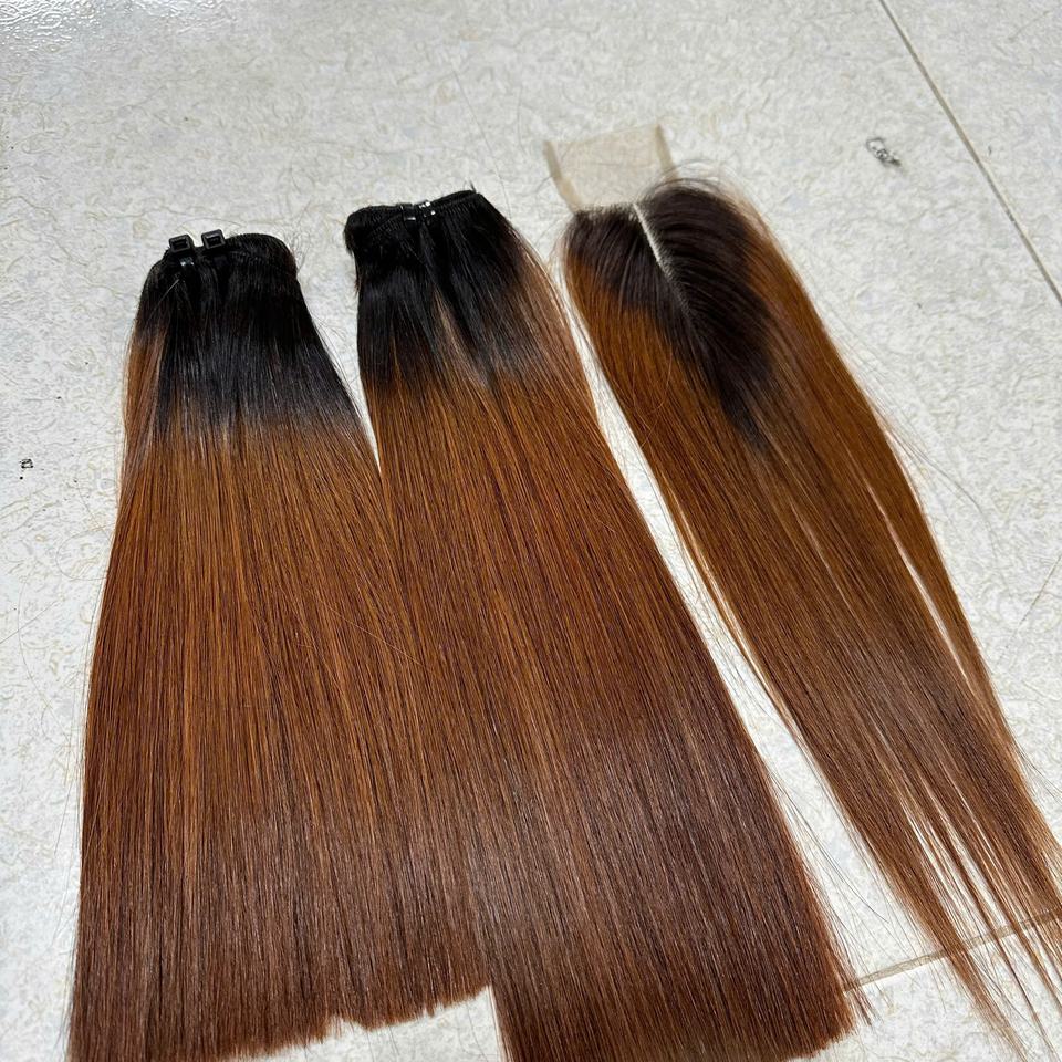 Extensions de cheveux humains 100% naturels, couleur ombrée, lisses, donneur unique, pointes plates, clips adhésifs, prix de gros