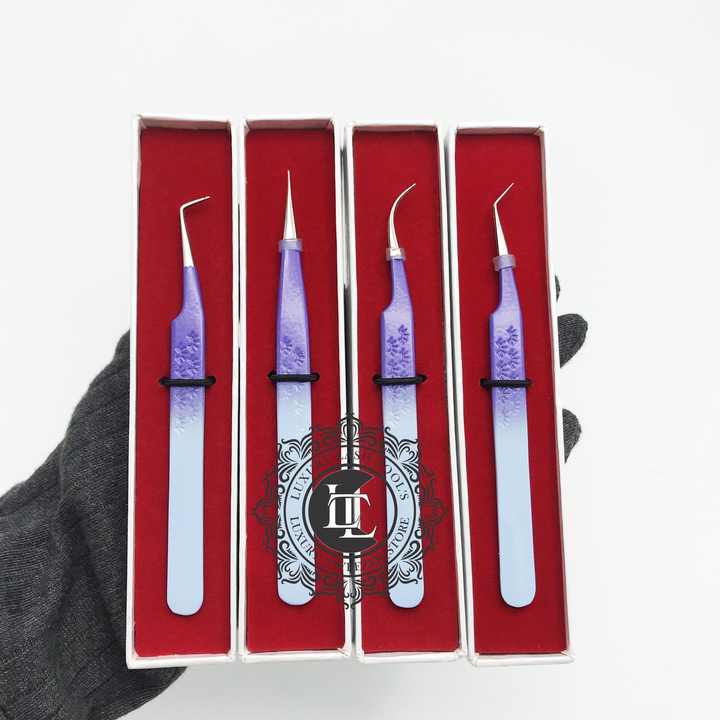 Pinces à cils professionnelles LUXURY LASH TOOLS Ombre Silver Point, outil d'extension en acier inoxydable de haute qualité avec revêtement en poudre