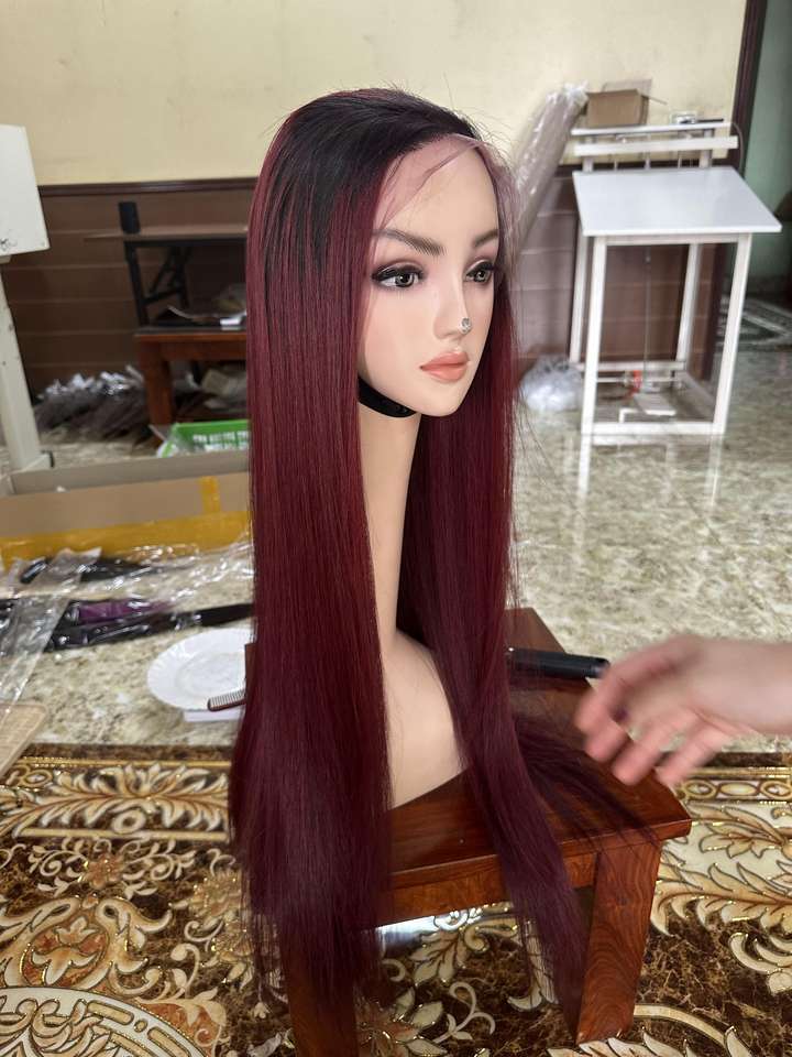 Ombre Wine Color Hair Wigs Vietnamese Human Hair Glueless Hair Cuticle Aligned for Black Women
