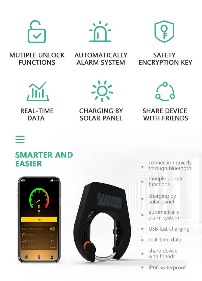 Omni Bluetooths Solar Cycle IP65 Waterproof Rental BLE RFID Security Bicycle Anti-theft Combination Smart Lock for Bike