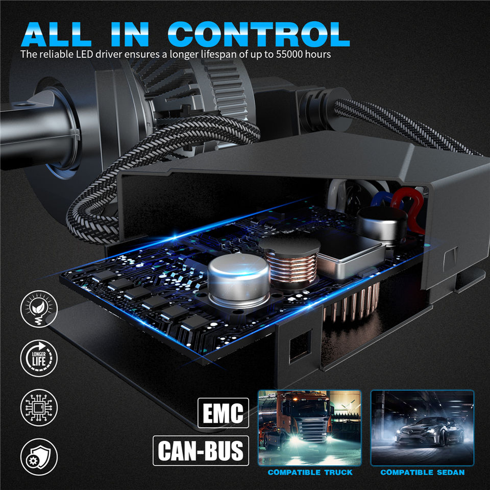 Phares LED omnidirectionnels ultra-brillantsH4, feux de conduite LED à haute efficacité et économie d'énergie