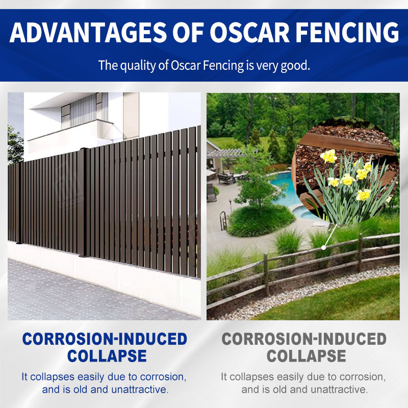 Panneaux de clôture en aluminium revêtu en promotion, design bois composté pour l'intimité, idéal pour jardin, balcon, cour