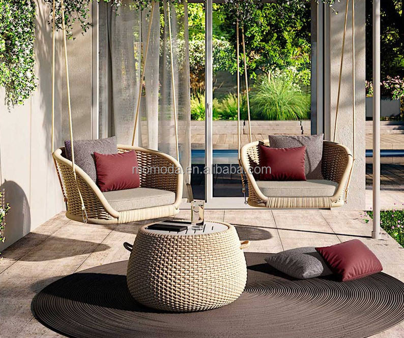 En promotion : Chaise suspendue œuf en rotin PE, design tendance, pour patio, véranda, jardin, chaise longue d'extérieur en osier, balançoire.