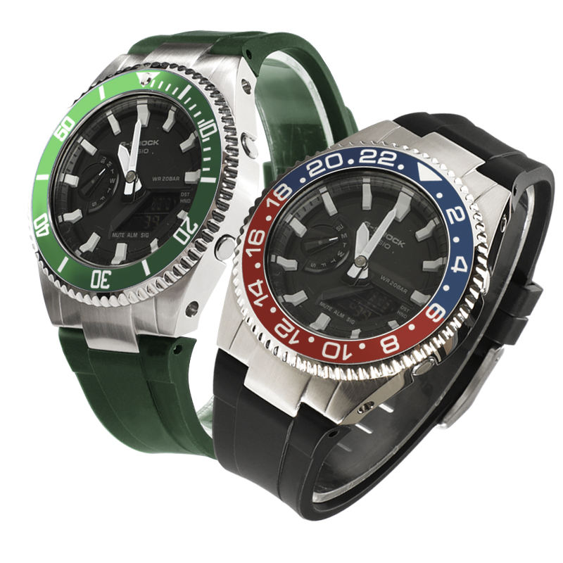 En solde pour le kit de modification G Shock GA2100, boîtier en acier inoxydable doré, lunette, bracelet en silicone, bracelet en caoutchouc, boîte cadeau incluse, bracelets de montre