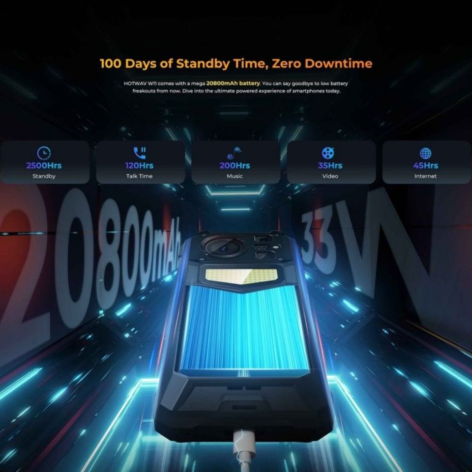 En vente HOTWAV W11 Téléphone robuste Vision nocturne 6GB+256GB Écran FHD+ 6,6'' Caméra arrière 64MP 20800mAh Android 13 Smartphone 4G