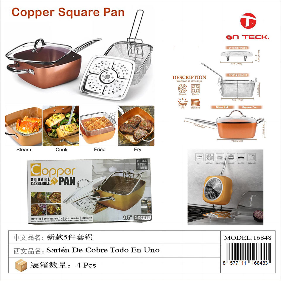 Ensemble de 5 casseroles On Teck antiadhésives en cuivre avec couvercles en verre, compatibles four, gaz et induction