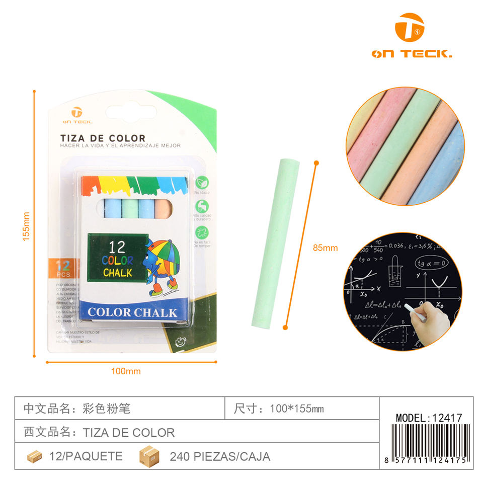 Craies colorées On Teck, lot de 12, souples, pour l'enseignement scolaire et la salle de classe