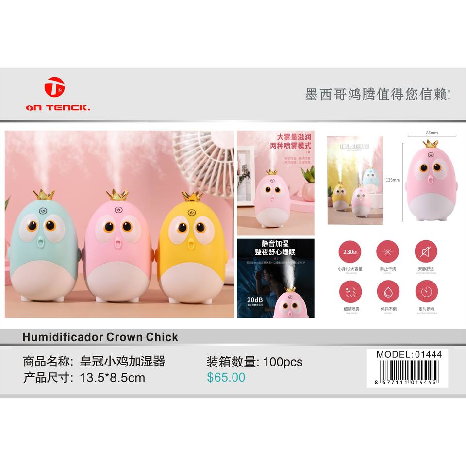 Humidificateur portable On Teck Crown Chick, alimenté par USB, 0,5 L, commande tactile, veilleuse, pour la maison et le bureau