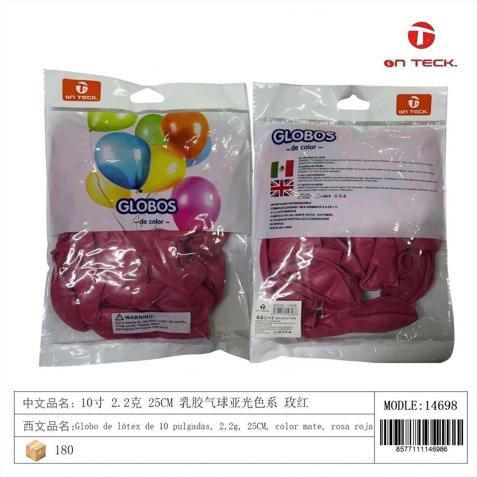 Ballons en latex On Teck 10 pouces, rouge rose, 12 unités, finition mate, décoration de fête