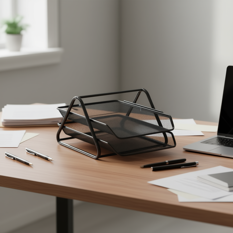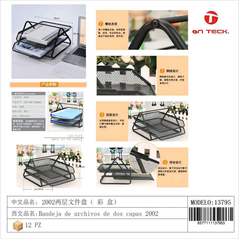On Teck Sa De Cv - Plateau à dossiers à deux niveaux en métal empilable - Organisateur de bureau et scolaire - 13795