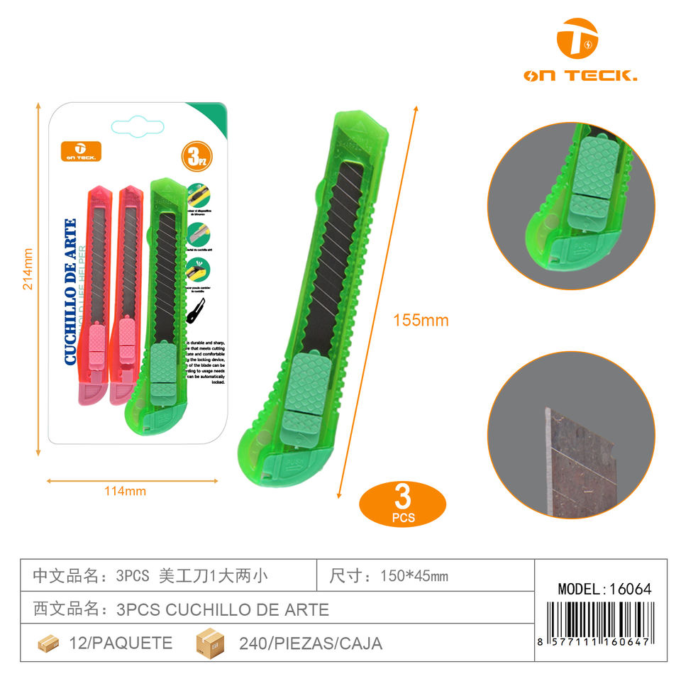 Ensemble de couteaux utilitaires On Teck, 1 lame grande, 2 lames petites, acier inoxydable, manche en plastique, outil de découpe artisanal