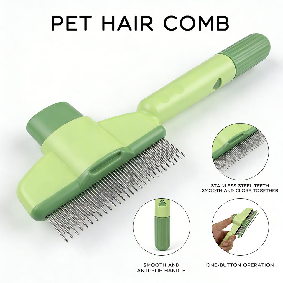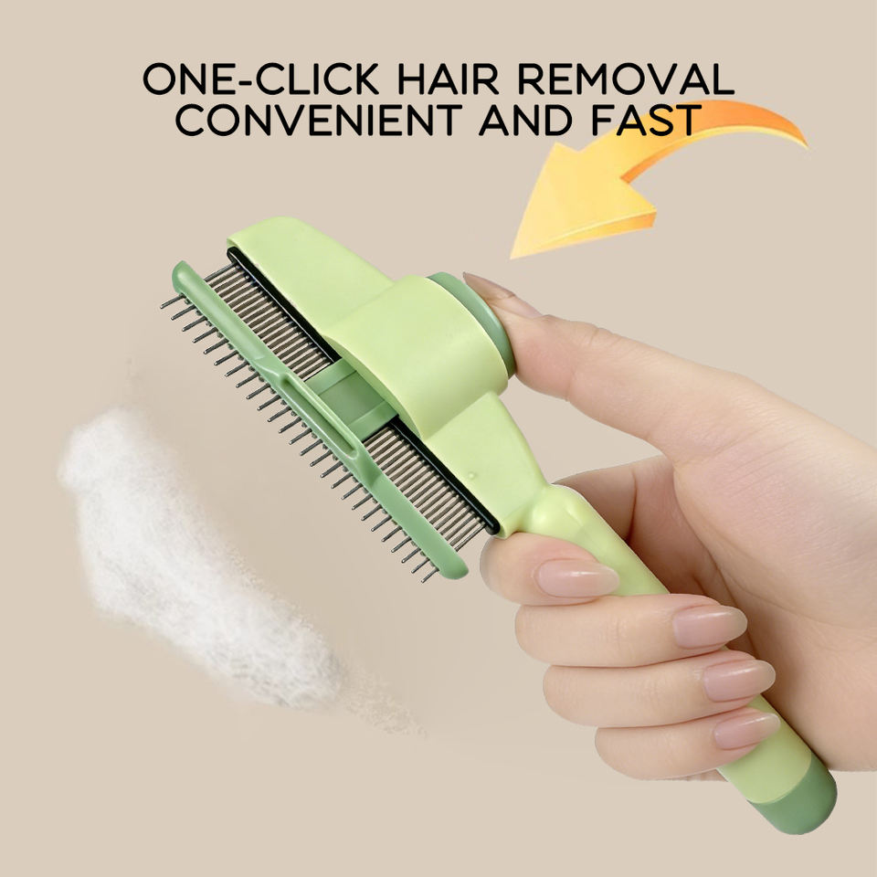 Peigne anti-puces portable autonettoyant en un clic avec dents longues et courtes en acier inoxydable pour chiens et chats