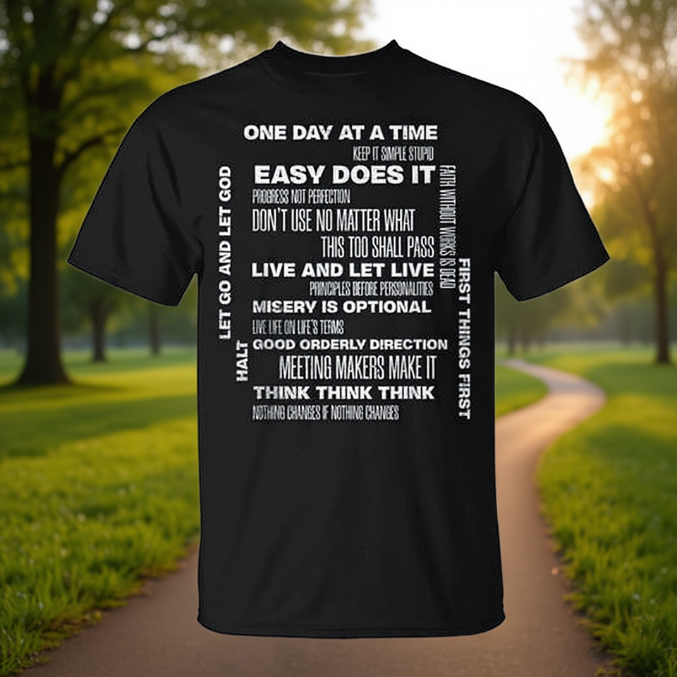 T-shirt inspirant One Day At A Time pour la récupération et la sobriété, unisexe, en coton, col rond, manches courtes, vêtements promotionnels