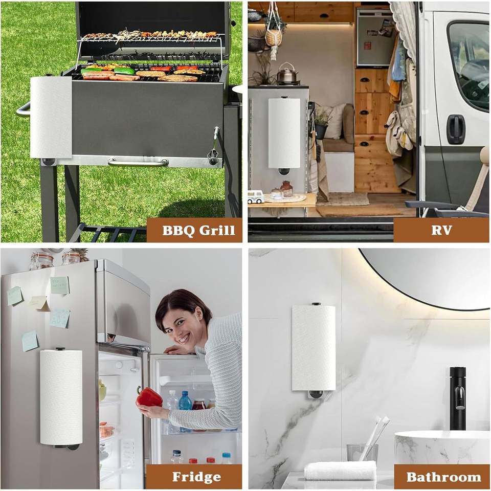 Support magnétique mural pour essuie-tout à une main avec mécanisme à cliquet, noir, adhésif facile à décoller pour réfrigérateur