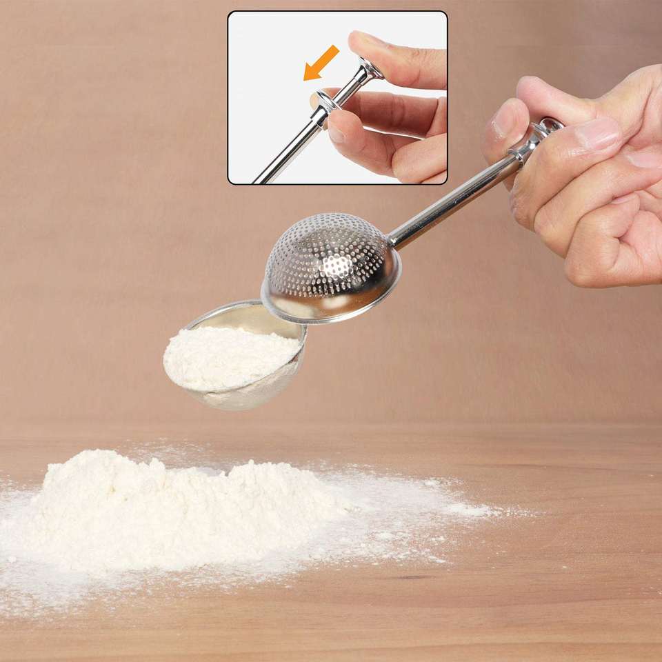 Opération à une Main 18/8 De Ramassage En Acier Inoxydable et Poussière Tamis À Farine Farine Plumeau Dépoussiérant Baguette pour Farine de Sucre et D'épices