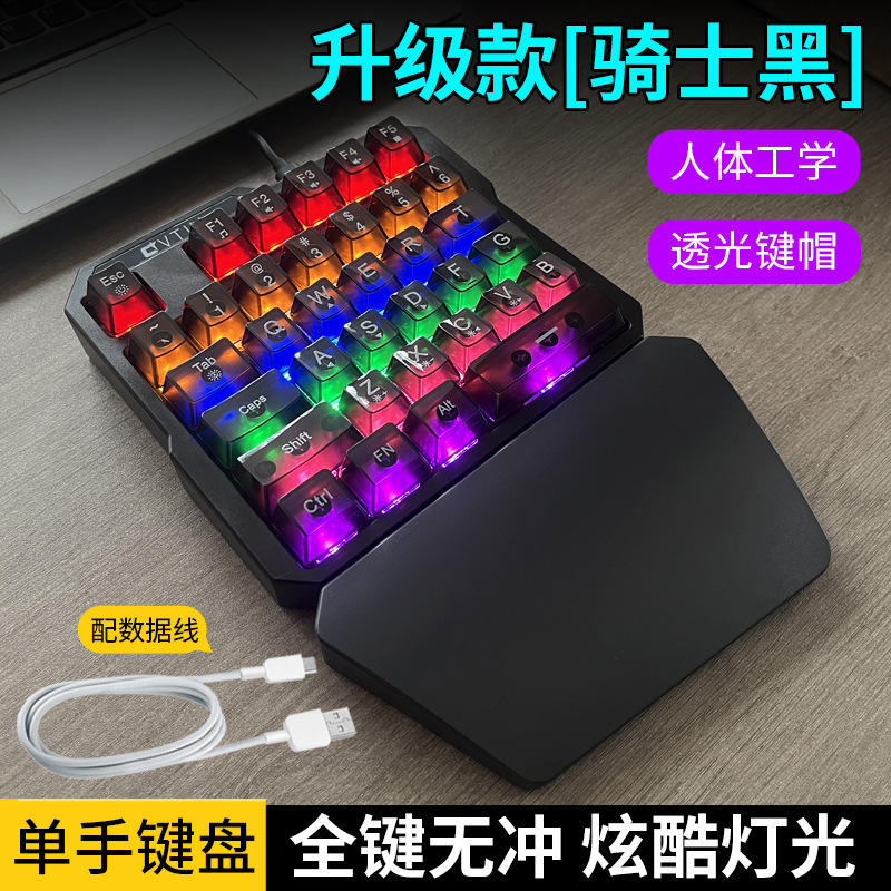 Clavier de jeu éclairé filaire RVB à une main pour PUBG LOL pour les utilisateurs gauchers Application pour ordinateur portable