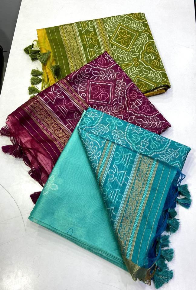 Une Minute Drapé Plus Beau Bandhni Imprimé Fantaisie Latkan Travail Pure Soie Tissu Saree Avec Chemisier Assorti Pièce Pour La Mariée
