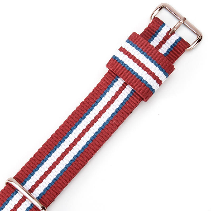 Bracelet de montre en nylon rayé tissé à passage unique, boucle en acier sport, bracelet de montre universel en tissu, 18 mm, 20 mm, 22 mm, réglable