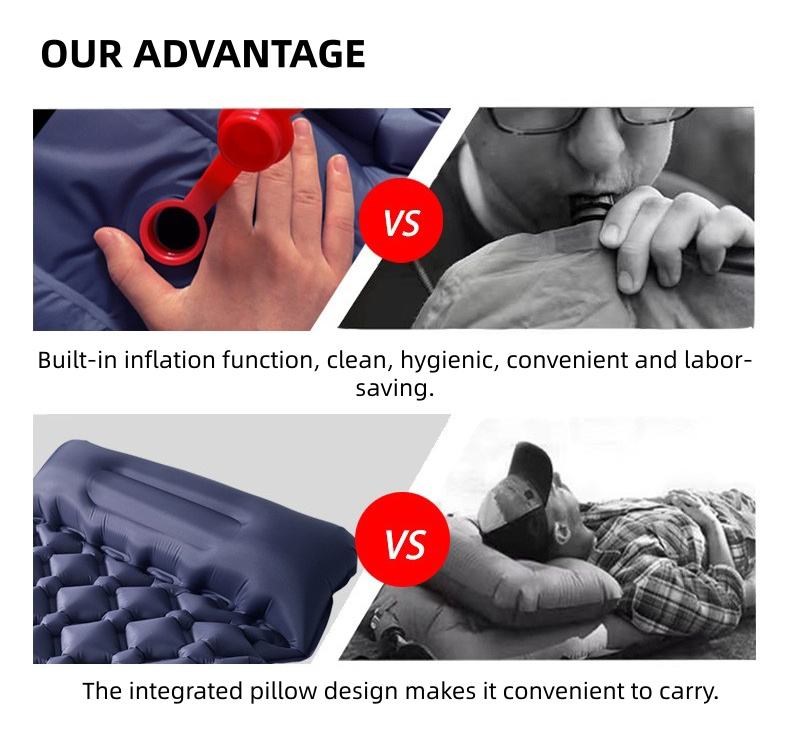 Matelas de camping auto-gonflant intégré pour une personne, portable, pour les voyages, la randonnée, le trekking