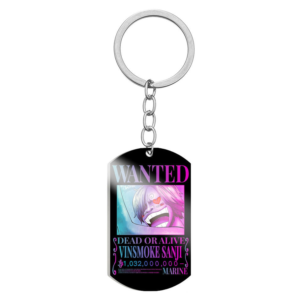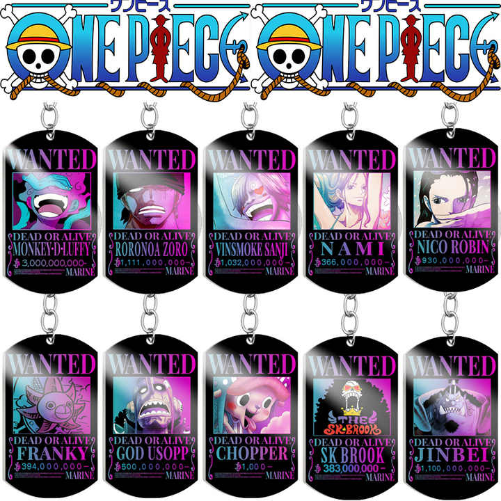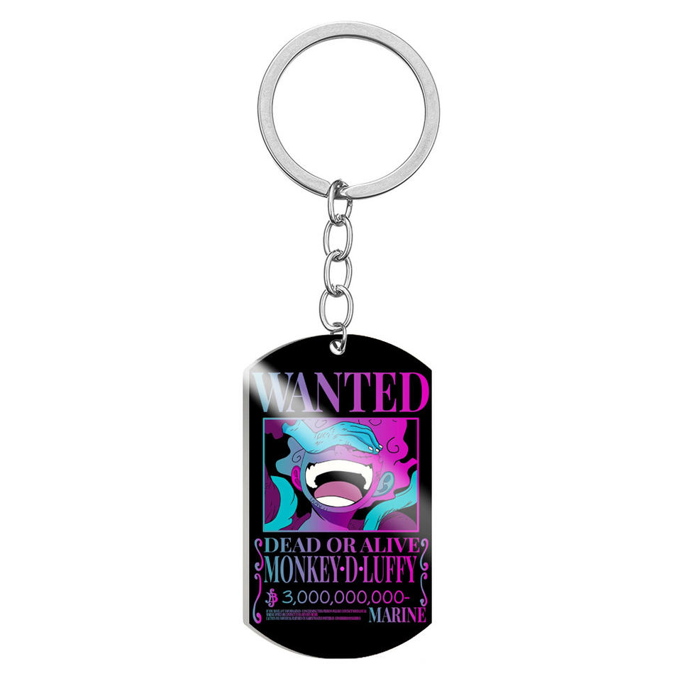 One Piece Luffy Porte-clés 3 milliards de primes Wanted Poster Sun God Nika Mousqueton en métal en acier inoxydable imprimé en couleur pour voitures